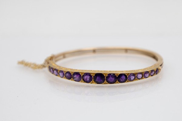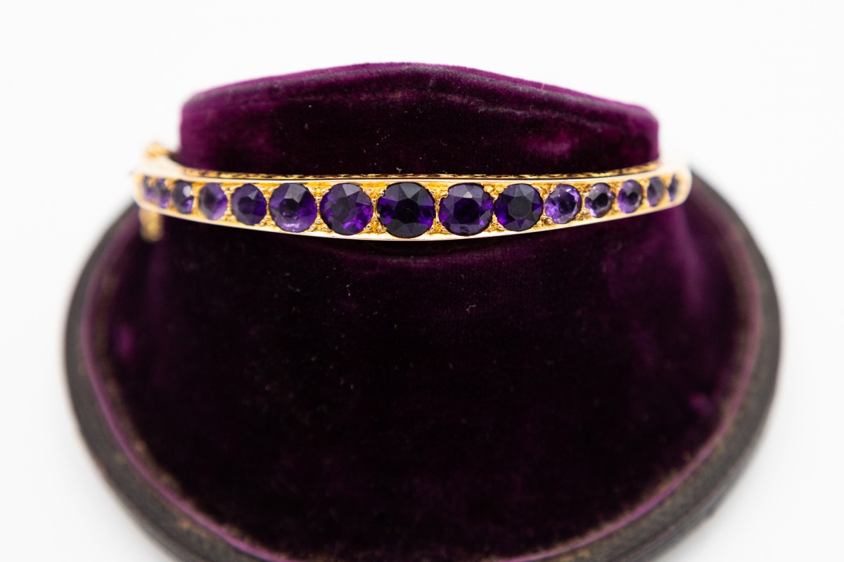 Starres Goldarmband mit Amethysten, Großbritannien, erste Hälfte des 20. Jahrhunderts