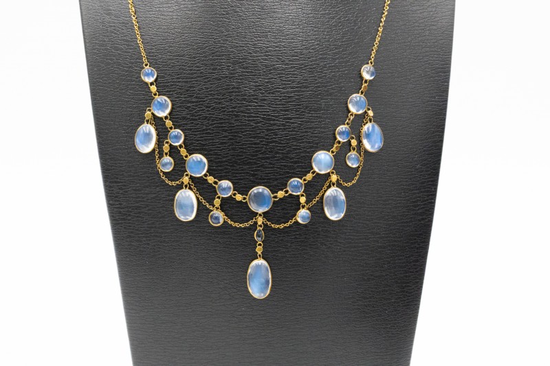 Die Kette besteht aus drei mit Perlen besetzten Schleifen (131 natürliche, weiße, halbkugelförmige Perlen).