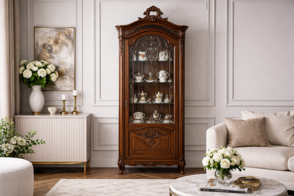 Vitrine aus Eichenholz, Frankreich, um 1900.