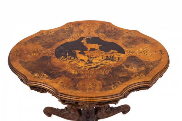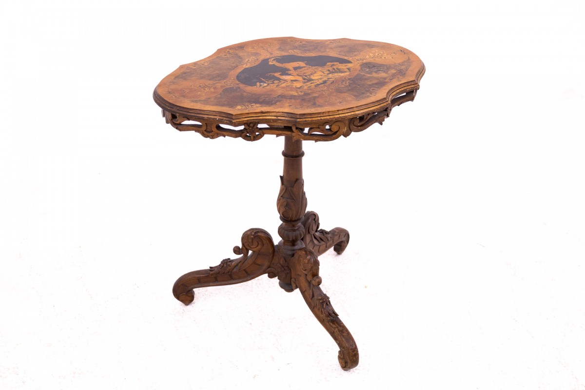 Ein einzigartiger Tisch mit wunderschöner Intarsienarbeit, Frankreich, um 1880.