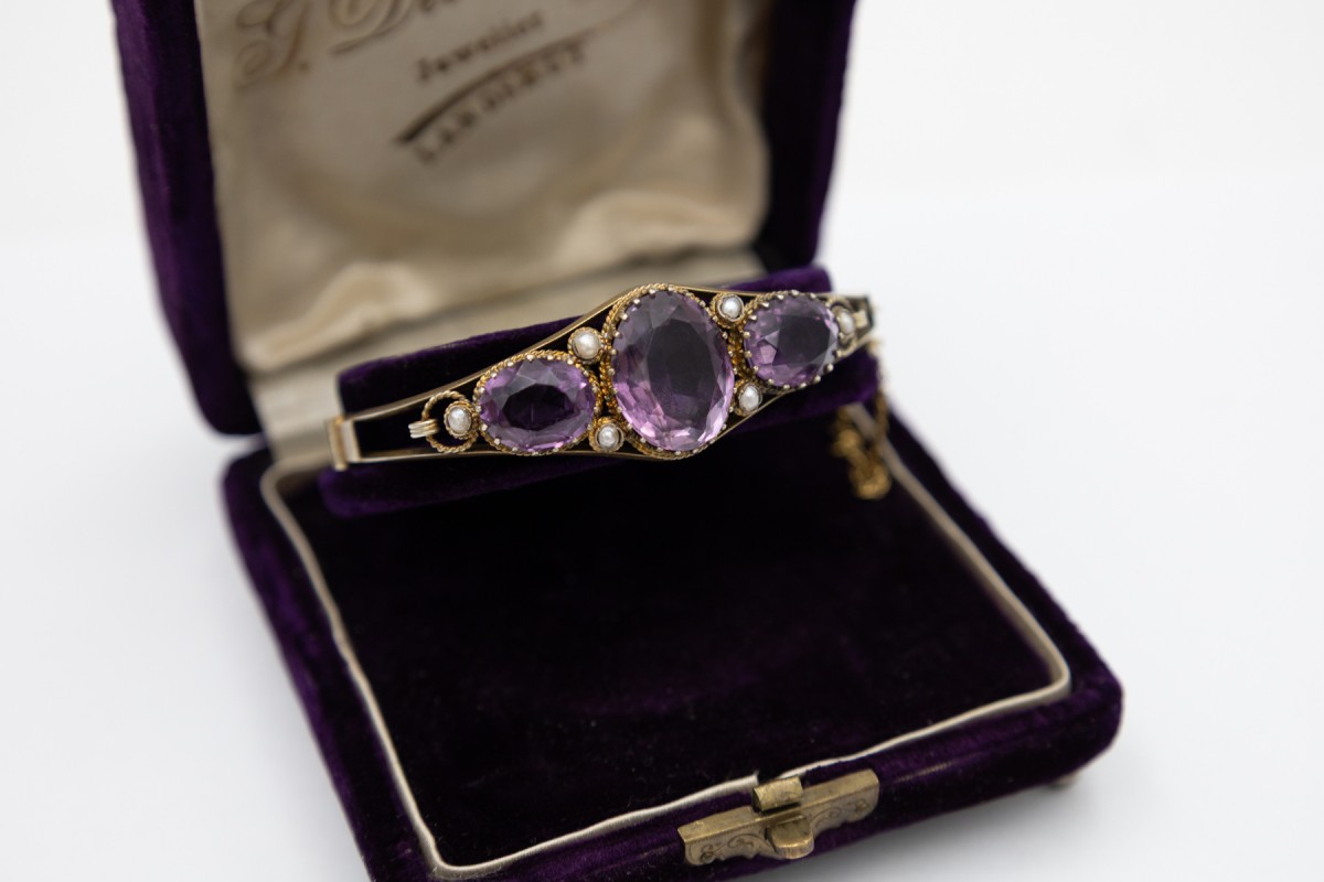 Antikes Armband mit Amethysten und Naturperlen, Schweden, Ende des 19. Jahrhunderts.
