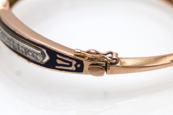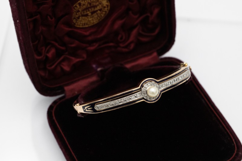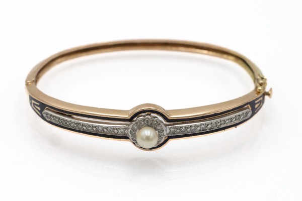 Antikes Goldarmband mit Diamanten und Perle, verziert mit Emaille.