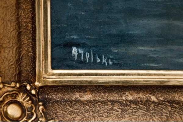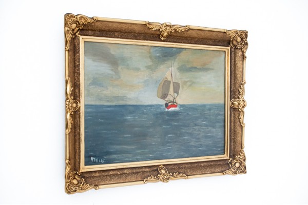 Gemälde „Schiff auf hoher See“, signiert A Jelski.