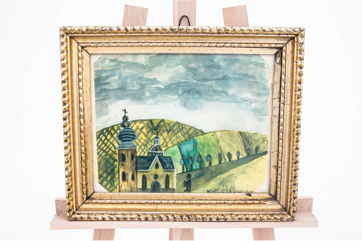 Gemälde „Kirche“, Aquarell.