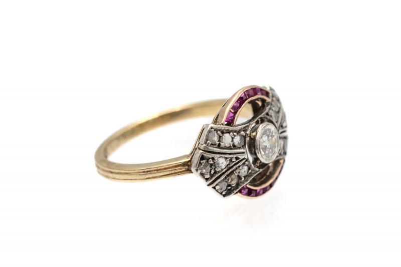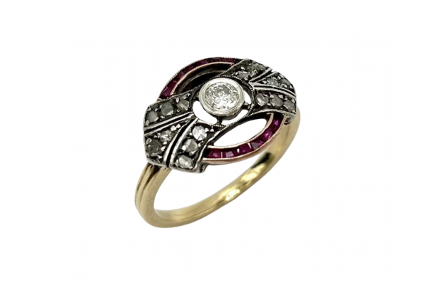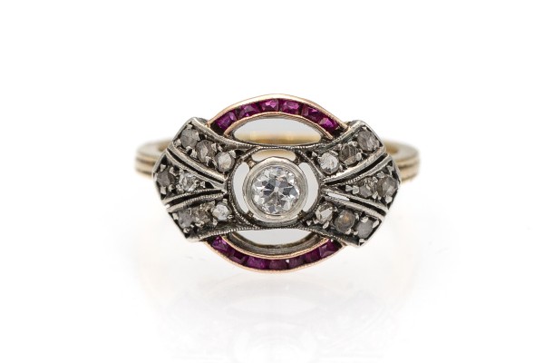 Vintage-Art-Déco-Diamant- und Rubinring, 1920er Jahre.