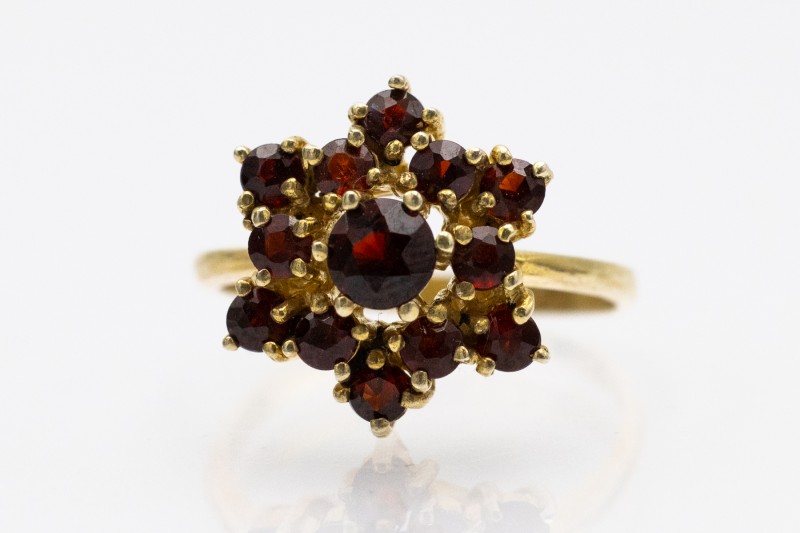 Gold-plated vintage ring with faceted garnets.
