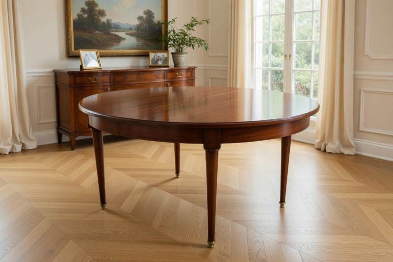 Antique round-top table from Northern Europe, around 1900. After renovation.