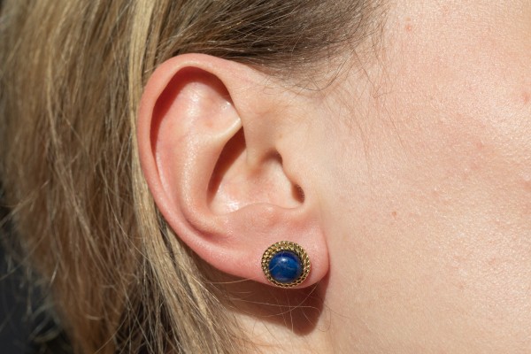 Vintage gold earrings with lapis lazuli