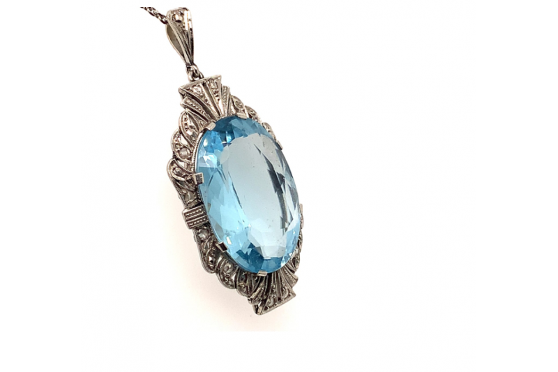 A unique Art Deco pendant adorned with an aquamarine weighing approximately 15.00 ct - 1930s.