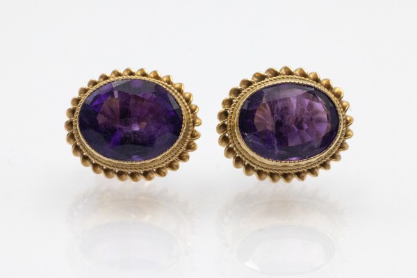 Vintage gold earrings with amethysts, Great Britain, second half of the 20th century