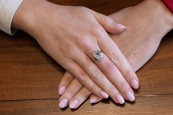 The ring is crafted from 0.900 platinum and 14-karat yellow gold (0.585).