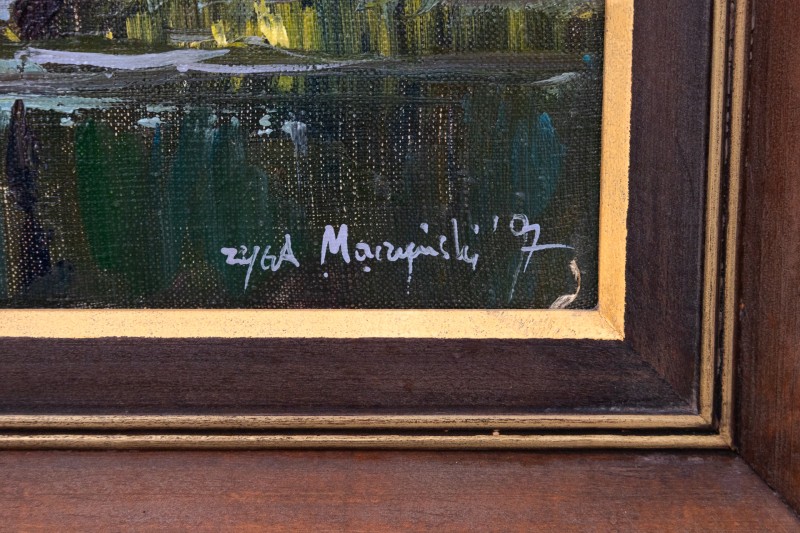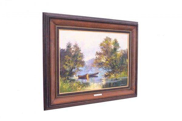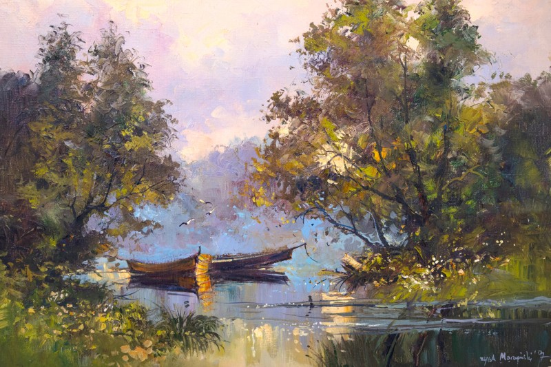 Painting "Boats on the Lake" by Zygmunt Mączyński.