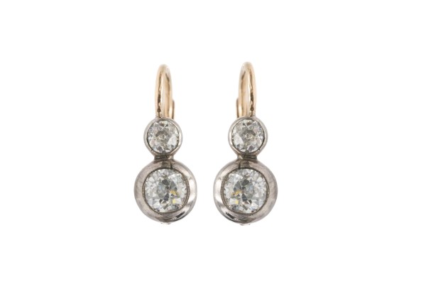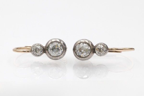Shiny vintage earrings with old brilliant-cut diamonds, approx. 1.30 ct.