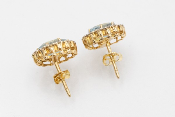 The earrings are surrounded by 28 diamonds weighing approximately 1.40 ct.
