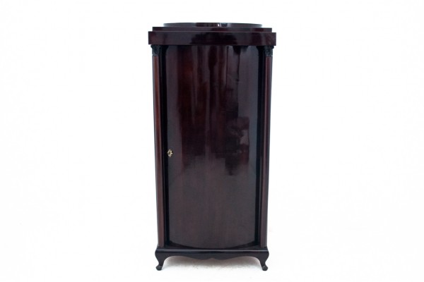 A chest of drawers in the form of a post, great for a bar or for other purposes. It has a rounded front wing and wooden shelves inside. A very large piece of furniture. Very good condition, after professional renovation.