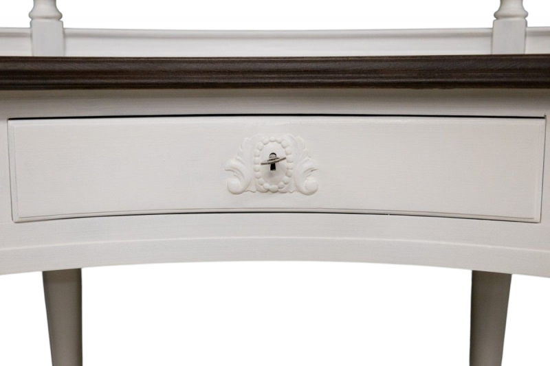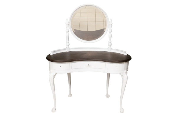 The piece of furniture has three drawers under the top, all lockable. The spacious top is ideal for storing both utility and decorative items. The dressing table has a mirror with an adjustable angle of inclination. Very good condition, after professional renovation