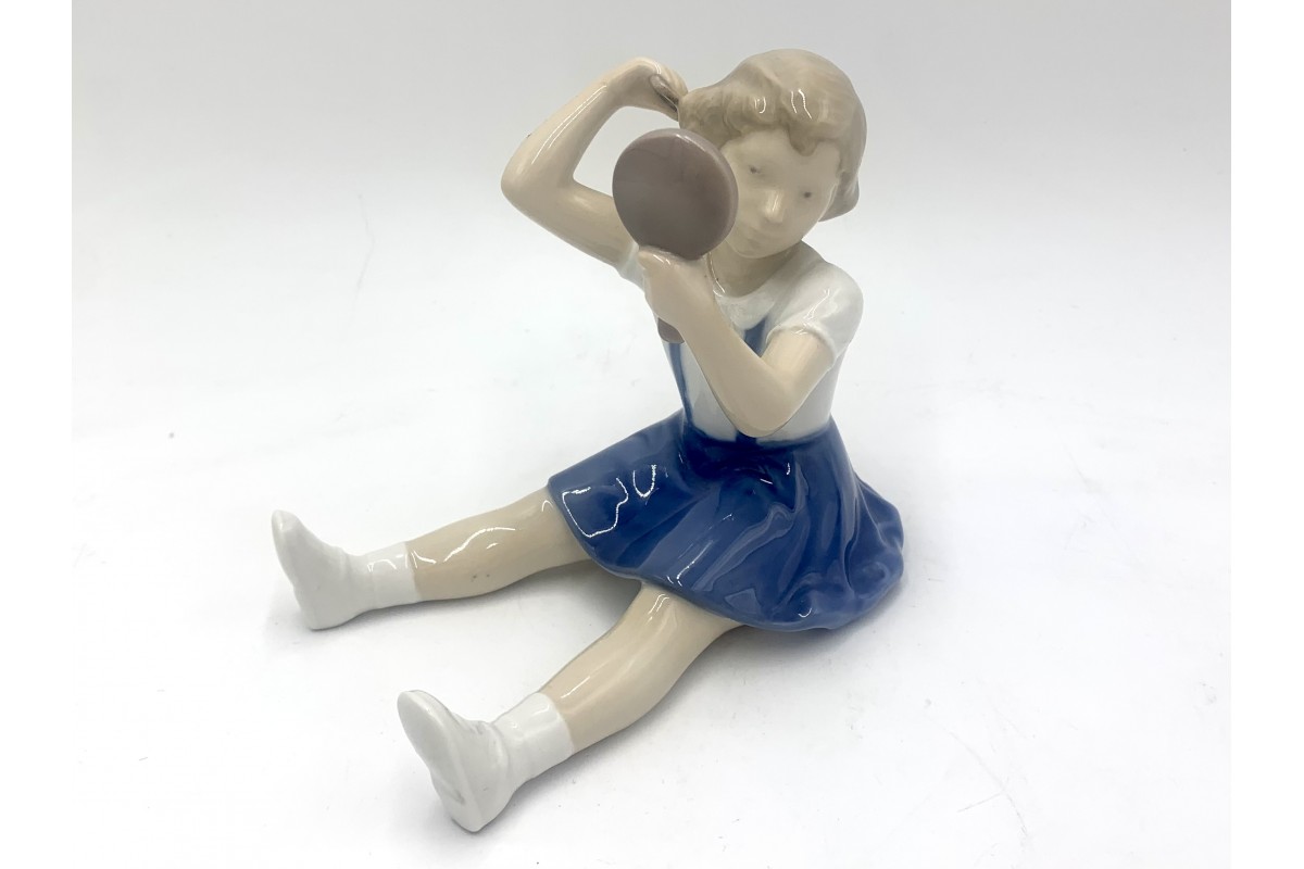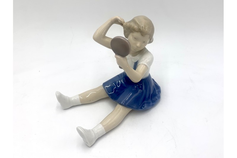 Porcelain figurine of a girl with a comb and a mirror