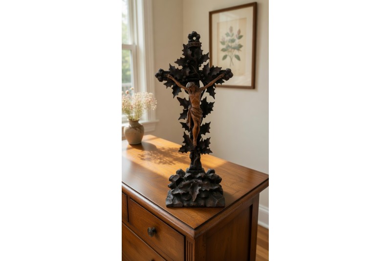A carol set consisting of a cross and two candlesticks in the Art Deco style