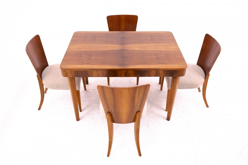 Table with chairs designed by J. Halabala from the 1930s, Czechoslovakia. After renovation. 9914CD