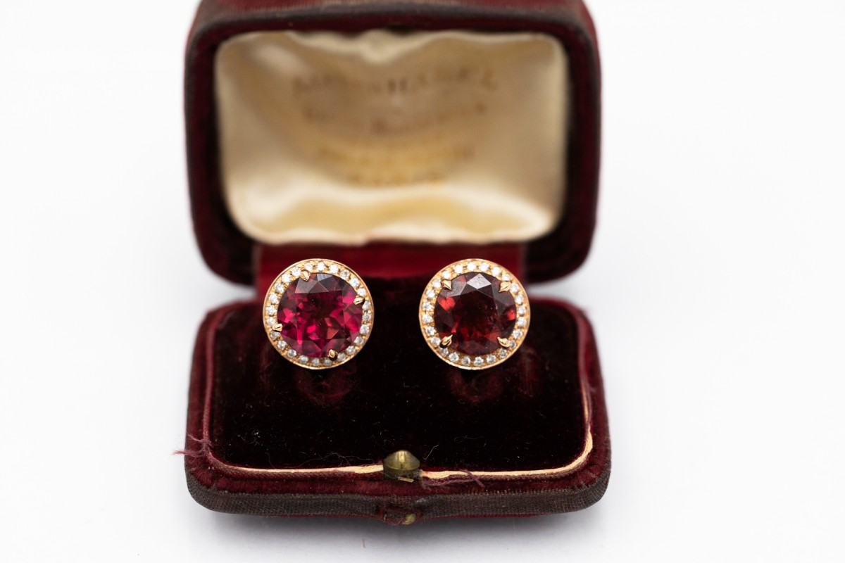 These unique earrings with pink and raspberry tourmalines are perfect for everyday wear and special occasions.