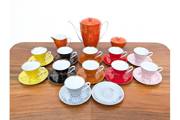Porcelain coffee/tea set for 10 people, signed Włocławek.