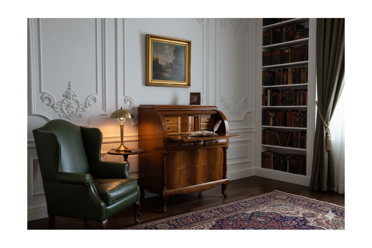 Mahoniowy sekretarzyk, Europa Północna, ok. 1900 rok. PO RENOWACJI