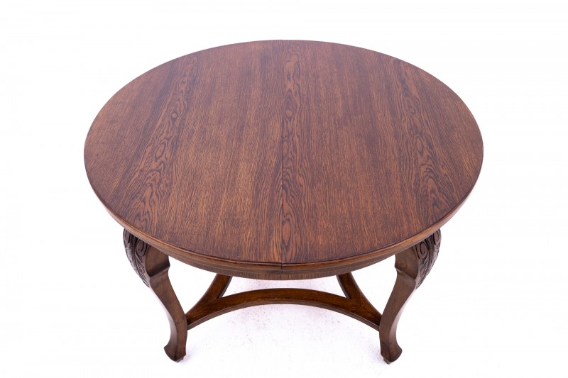 Zabytkowy stół wraz z sześcioma krzesłami z przełomu XIX i XX wieku. Po renowacji.