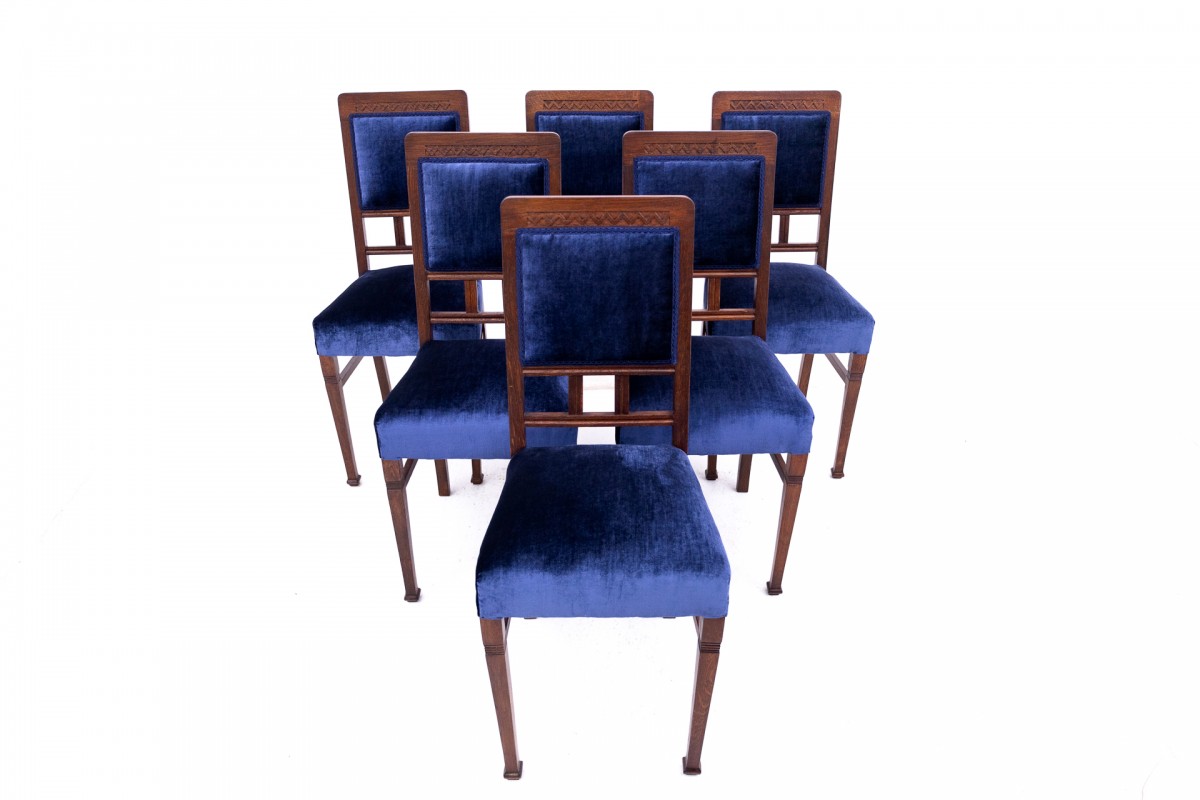 Komplet krzeseł secesyjnych, lata 30. Po renowacji.