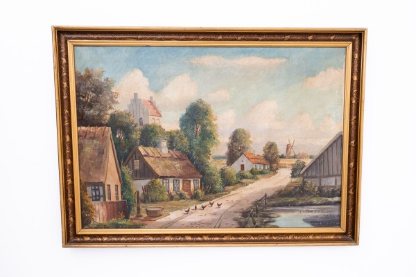 Obraz "Wiejski krajobraz" sygn. Gerd Halsted, 78 x 108 cm.